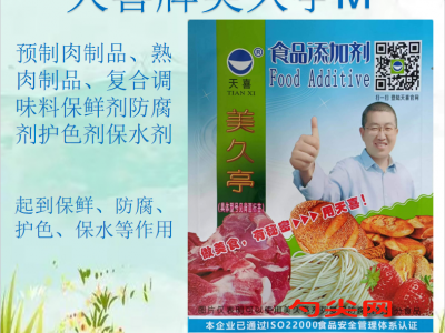 ★功能作用:〔美久亭M〕用于预制肉制品、熟肉制品、复合调味料,起到保鲜、防腐、护色、保水等作用,〔美久亭M〕防腐保鲜主要成分为天然防腐剂,价格高,更安全,适用于高品质类食品。