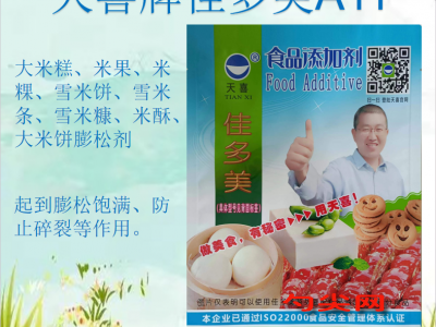 ★商品名:天喜牌佳多美A11型 产品名称:佳多美牌复配膨松增稠剂1 型号:JDM-A11 本品按照《食品安全国家标准 食品添加剂使用标准GB2760》及补充规定的品种、应用分类、使用范围、最大使用量、残留量等科学组方,并且按照《食品安全国家标准 复配食品添加剂通则GB26687》精心配制而成。本品已经通过食品生产许可,保障食品安全。用户按照本说明的用法用量生产制作的大米制品(仅限发酵大米制品)(食品分类号:06.02.02)既不会超标也不会超量。